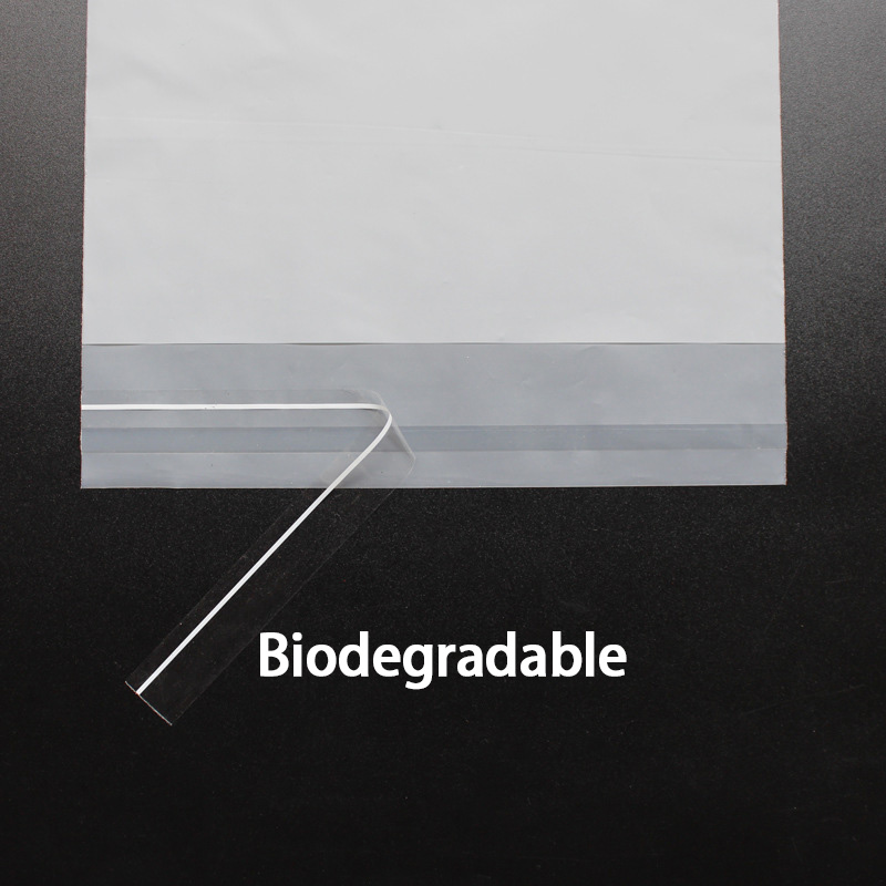 Ympäristöystävälliset biohajoavat itseliimautuvat pussit, jotka on valmistettu PLA:sta, PBAT:sta ja maissitärkkelyksestä. Kompostoituva, kestävä ja muokattavissa vaatteiden, kenkien ja verkkokaupan pakkauksiin.